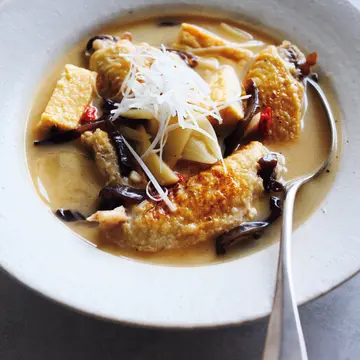 ❷フライパンを熱してオリーブオイル大さじ1(分量外)を入れ、①の肉を入れて強火で全体に焼き目をつけて取り出す。里いもを入れて切り口に焼き目をつける。
