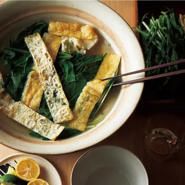 具材の数が少なくても満足できる大人の小鍋料理。料理家 飛田和緒さんが、しょうがや豆乳などのヘルシー素材を取り入れた「豚肉のしょうが鍋」と「卵と青菜の豆乳鍋」のレシピを伝授。