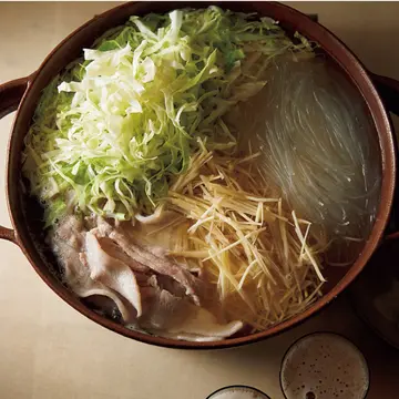 「小鍋は食べたいときにさっと作りたいことが多いですね。だから基本は肉や魚介などのタンパク質素材、プラスひとつか2つくらいの野菜で。具材の数を減らすと下ごしらえの手間も減って、手早く作れます。青菜などのほか、豆乳や豆腐などヘルシー素材も取り入れて。味つけは昆布だし+塩をベースにして、ほかの調味料を少し足す感じ。昆布だしはそのつどとるのは大変なので、水出しにすると簡単! 冷茶ポットなどに昆布と水を入れ、冷蔵庫に2時間〜ひと晩入れておくだけなのでおすすめです」