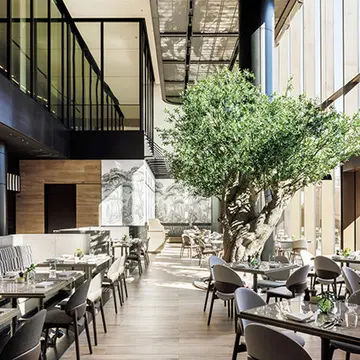 ホテル内には、4つのダイニングとバーがあり、「Lobby Bar」では、昼間はこだわりのコーヒーやペストリーで歓談を、夜はシャンパーニュやワインで気軽にくつろげる。2階にある「Punch Room」は、海外のエディションでは定番ながら日本では初めての、「パンチ」カクテルにフォーカスしたラウンジバー。レストラン「Sophie at EDITION」では、シェアスタイルのブラッスリー料理を提供する。春夏には屋上に緑豊かなナチュラルワインバー「The Roof」も開業予定だ。