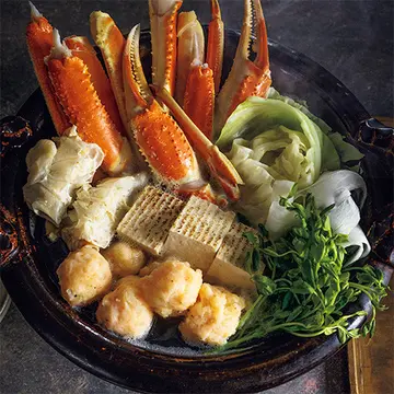 ❺④の鍋に③のせり以外の材料すべてと、②のだまっこ、④の鴨つくねを入れ、煮立ったら最後にせりを加える。各自取り分けて、好みの薬味をつけていただく。