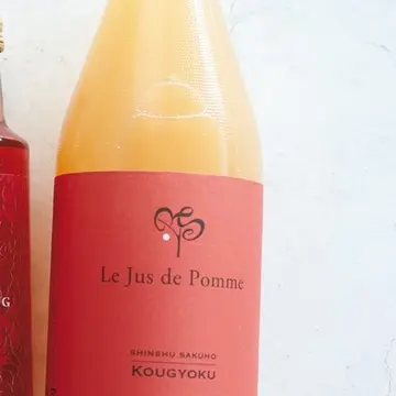 「品種別のジュースは、個性がきわだっておもしろい。紅玉は酸味と甘味のバランスがよく、さわやかな味」(長野県今週得るジュ・菊池さん)。元ソムリエのご主人が、ワインのぶどう品種の感覚でつくる。リンゴは自家農園のもので、酸化防止剤不使用。11月にはシナノゴールドやサンふじなども登場。