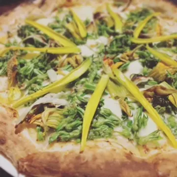 刺繍のお店からすぐのピザ屋さんで、お花のピザ