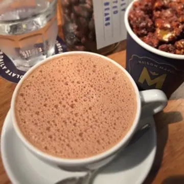 噂のチョコレート店のカフェでのんびりホットチョコレート