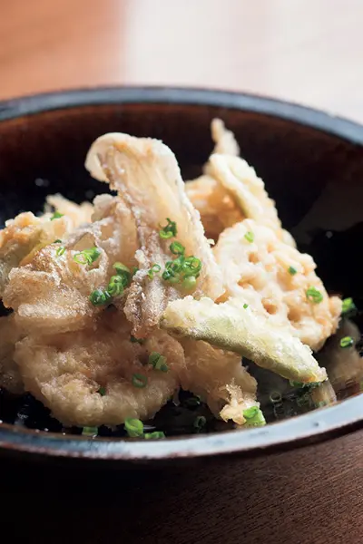 “味にうるさい金沢人が通う店”として有名で、料理はどれもがていねいな味。ご主人・川口和彰さんの料理への愛情が伝わってくる。ここで食べるべき一品が「骨まで食べれるブリ大根」で、なんと、毎年冬になると横浜からこのメニューを目ざしてやってくる常連客もいるほど(!)。少し甘めの味つけで、ブリの骨も大根もほろっと溶ける。地元の純米酒と合わせれば、至福の時間に。