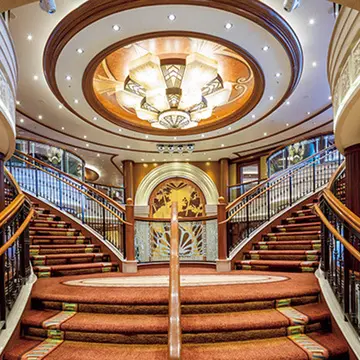 船内各所にアート作品が配されていて、まるで洋上の美術館のよう。客室タイプも多彩に用意されており、全室海側プライベートバルコニーとバスタブがついたゆとりある空間だ。ひとり客のための「ソロバルコニー」客室もあり、クルーズ好きの旅慣れたゲストに人気。
