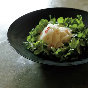 香菜と蓮根をエスニック風に仕立てた、冬のサラダ