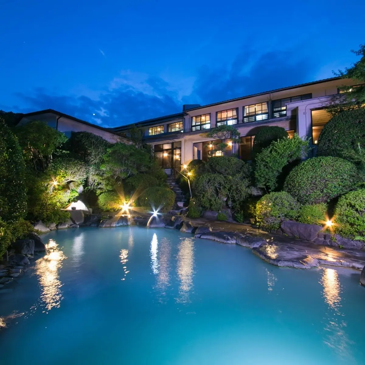 雄大な富士山と駿河湾を臨む沼津市千本松原の一画に、静かに佇む「沼津倶楽部」。三千坪の敷地内に建つ集合別邸は、建築家・渡辺明氏の設計で2008年に増築されたもの。敷地の玄関口に位置する茅葺きの長屋門と数寄屋造りの建物は、国の有形文化財にも指定されている。客室は8室で、和室やバルコニー付きの洋室、和洋の要素が混在したメゾネットなど、趣の違う客室タイプが揃う。どの客室からも観られる松林と、富士の伏流水が湧き出る水盤は、まるでアートのような美しさ。スパには、ukaが沼津倶楽部のために監修した予約制のトリートメントのほか、内風呂や、光明石を使用した人工温泉の露天風呂、岩盤浴室とサウナ室もあり、癒しのひと時を過ごすことができる。