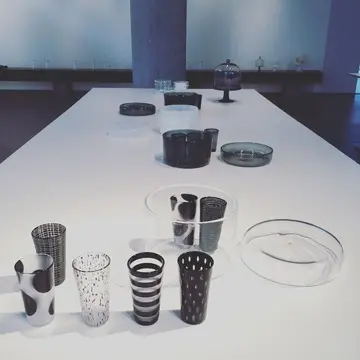花瓶にもちょうどいいピッチャーも、前回人気を博し追加でいくつも吹いたそう。こちらではマッコリを入れるのに重宝するのだとか。今回も美しいマダム達が続々と到着のオープニングレセプションでは、宮廷料理を学び、日本でも著書がいつくもある崔智恩(チェ・ジウン)さんの見目麗しい料理が白磁に盛られ振舞われました。「この美味しい料理目当てのゲストも多いはず(笑)」と辻さん。もちろん、この静謐な空間と相性のいいモノトーンの作品も好評でした。