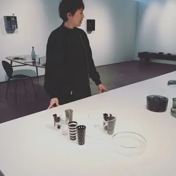 「カンナムのチョンダムドン、この空間や人の暮らしに合うかな、と思って今回はモノトーンをテーマにしてみたんです」と辻さん。使い方の提案として、テーブルセッティングも展示しています。ギャラリーオーナーと意見を交わし、完成する個展はいつも自由で独創的。毎回新しい発見があります。辻さんはオープニング前日の準備中、ドラマ「秘密の森」で話題となった映画女優ぺ・ドゥナさんにも遭遇したとか。さすがセレブの街、チョンダムドンです。