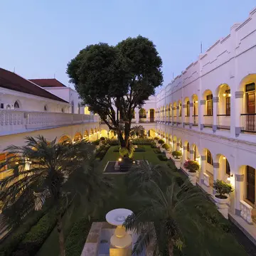 歴史的なコロニアルホテルであるマジャパヒト・ホテルは、ラッフルズホテルを創設したルーカス・マーティン・サーキーズによって当時の贅を尽くして建てられた。アンティークタイルや幾何学模様の壁など建物内のあちこちに見受けられる細かい意匠や、豪華なシャンデリアなどの調度品が、今も美しく保存されている。トロピカルガーデンを囲むように建つ白亜の建物に並ぶ客室は、ボトムカテゴリのクラシックスイートでも44㎡の広さを持つ。また東南アジアで最も広く豪華だと言われるプレジデンシャルスイートには、歴代の大統領やチャーリー・チャップリンも宿泊した。創業当時の面影を壊さないようにリノベーションを重ねてきたこのホテルは、激動の歴史を駆け抜け終わった今、大切に丁寧に育まれて来た愛情で満たされている。