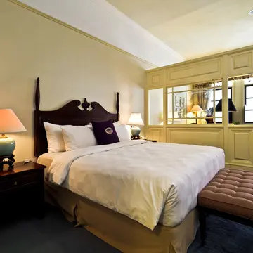 マジャパヒト・レジェンダリー・スイートのベッドルーム。年代物の貴重な家具が使われている。