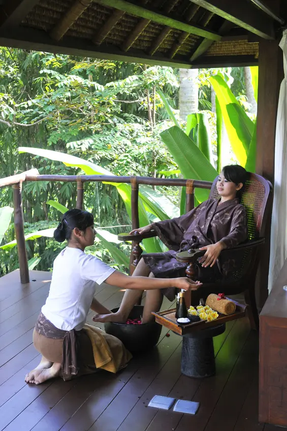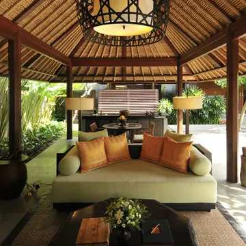 緑豊かな小道に伝統的な門構えのヴィラが並ぶさまは、バリの昔ながらの村のよう。プライベート感たっぷりの各ヴィラはウッディなインテリアでまとめられ、セミオープンの広いリビング&ダイニングエリアが付く。快適な滞在をサポートしてくれるスタッフたちのホスピタリティは、バリ島でもトップクラス。専属のバトラーが、リゾート内でのリクエストはもちろん、滞在中にやってみたいことや、バリ島について知りたいことまで何でも相談に乗ってくれる。