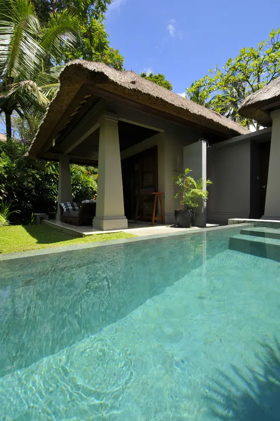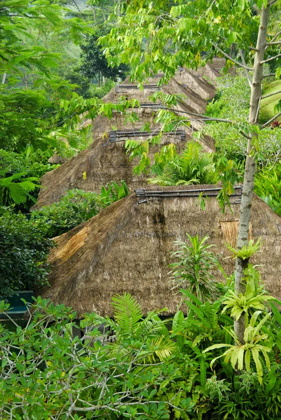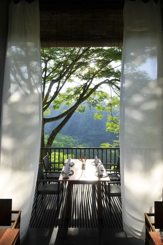 ウブドに隣接したペジェン村、木々が茂る渓谷の森沿いに広がるなだらかな丘陵地帯にリゾートは立つ。ロビーエリアの先に続く3階建のビルディングに並ぶスーペリアとデラックスは、モダンで機能的なデザイン。ヴィラは敷地を縦断する丘の上の小路から渓谷へ向かって隠れるように点在し、プライベート感たっぷり。自然素材を多用した心安らぐインテリアだ。ルームタイプもヴィラも約半数がツインベッドになっているので、友人同士の旅にも利用しやすい。