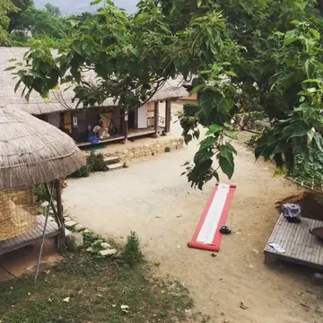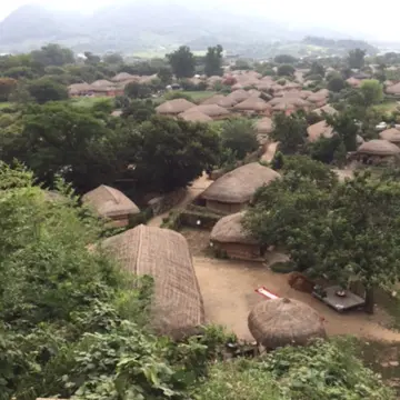 伝説の大木のある客舎。村を囲む土城は1424年に石城に