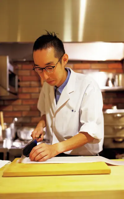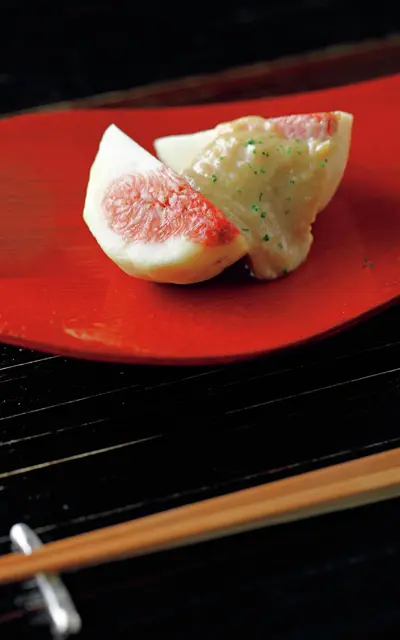 料理はシンプルを基本とし、絶対においしいと思う究極の素材を組み合わせ、味つけや量は様子を見て調整するなど、板前割烹ならではの柔軟な対応がされる。カラスミとチーズ、すっぽんと松茸、穴子と蓮根餅など、この秋も目ざしたい味が目白押しだ。