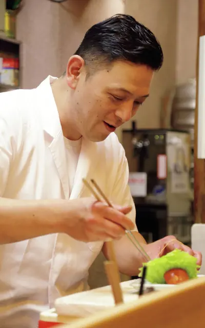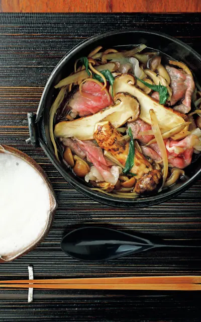 例えば、いちじくにかかる味噌はクルミで香ばしさと食感の楽しさを添える。鯖寿司の鯖は、酢と塩の量や締める時間をこまやかに加減し、寿司めしは昆布だしで炊いた醤油風味に。常におく牛肉も、松茸が入荷すると小鍋ですき焼きにし、長いもとろろが添えられる。女性スタッフの気遣いも行き届き、ひとり客も肩肘張らずほっこり和める。