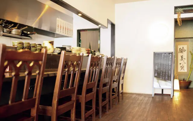寺町の電気街のビル2階にある、居酒屋以上、割烹未満のお店。カジュアルな雰囲気の中、昼はハイクオリティのセットメニュー、夜は素材厳選の一品料理を楽しめる。