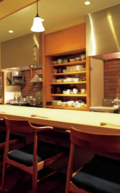 お客の9割が一品料理をリクエストし、そのメニューの数はおよそ50種類。ほとんどの料理が注文を受けてから作るため、その間は主人の中尾雄三さんやスタッフと会話をしたり、調理の行程を眺めて楽しんだり、とひとりでも決して退屈することはない。
