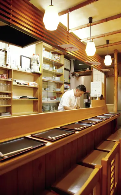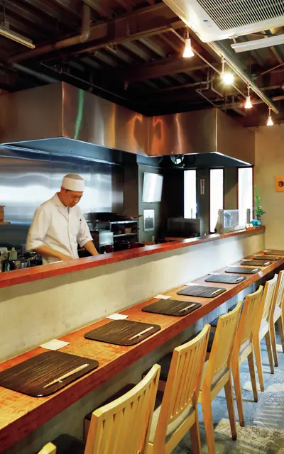 オープンして2年の間に着々と単品メニューを進化させ、評判を上げてきた板前割烹。「カウンターの奥行きが広めで、接客も心地よく、ひとりでもリラックスして食事を楽しめます」(青山さん)。