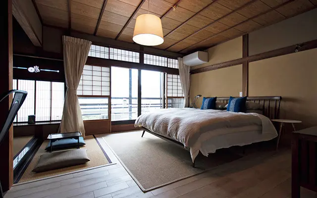 町家の意匠を残しながら、快適に滞在できるように改築。ファブリック使いも素敵