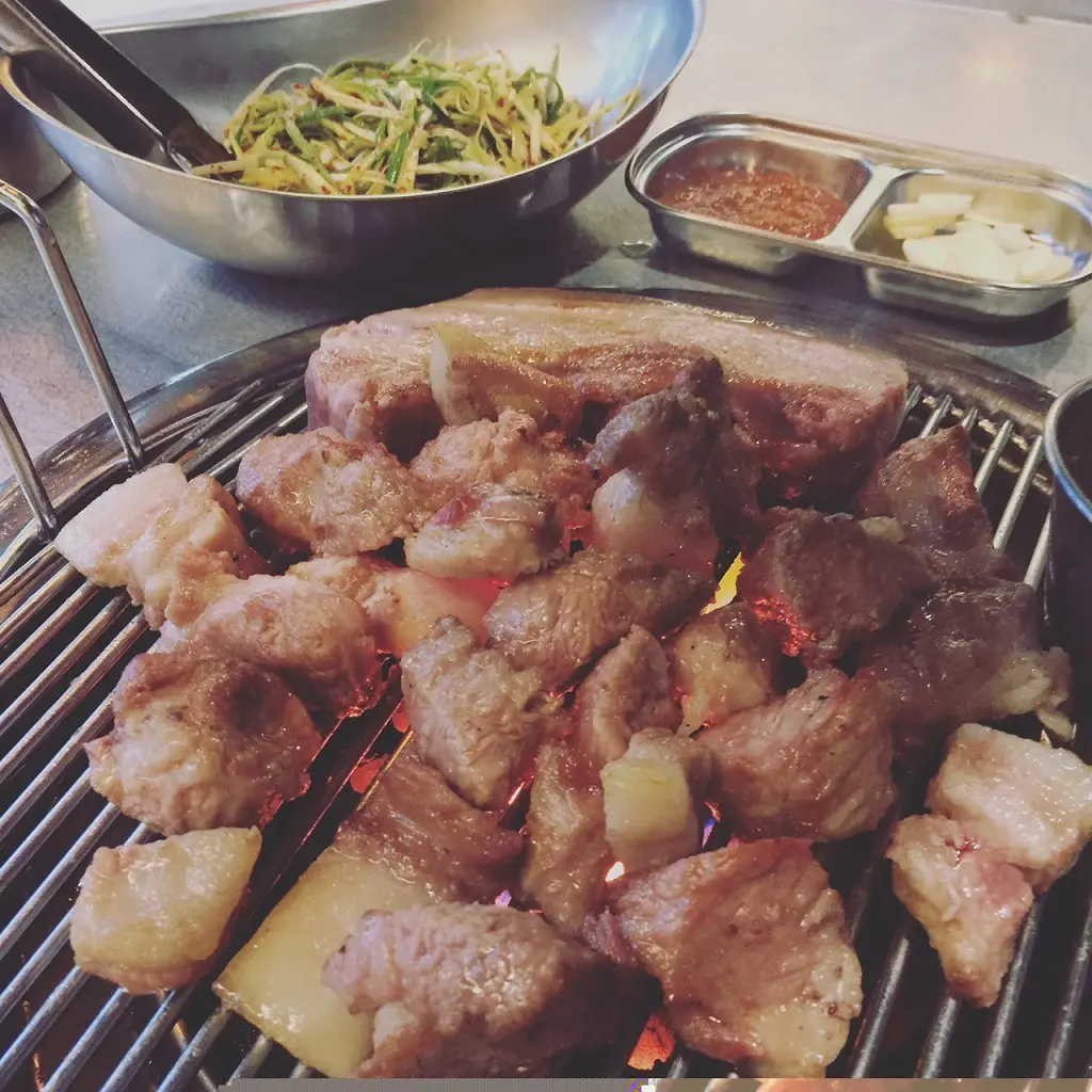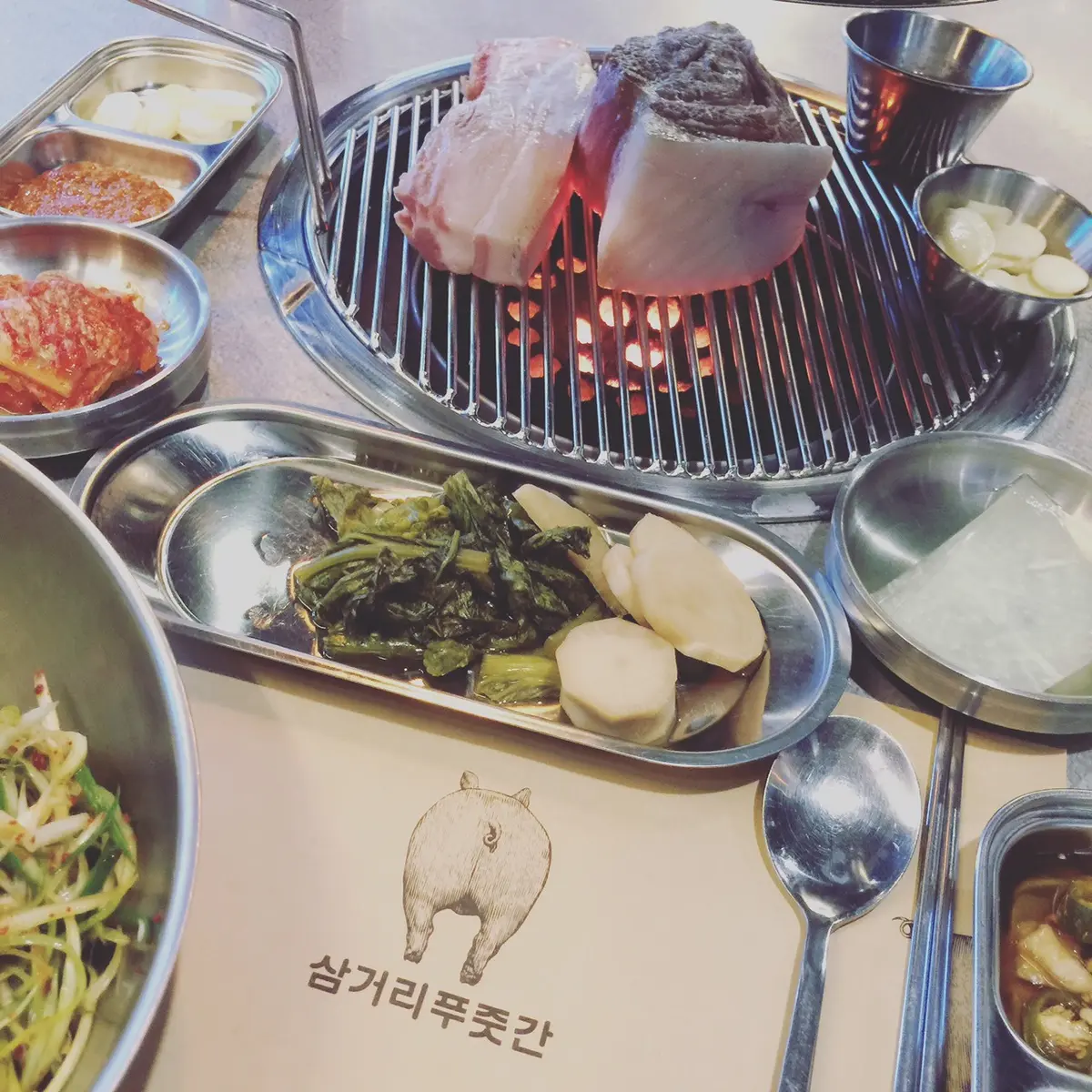 今回の旅の目的は、今年1月にオープンして話題の、ジェジュ・シンワ・ワールド・マリオット・リゾートのホテルステイ。ホテルにスパやサウナはもちろんカジノもあるほか、神話ワールドには、アミューズメントパーク、BIGBANGらが所属する大手芸能事務所YGのYGリパブリックのカフェ、レストラン、ボーリング場など娯楽施設が充実。なかでも渋谷にも今年オープンして人気のサムゴリプジュッカンで、済州黒豚の五枚肉や肩ロースの炭火焼きはマスト!分厚い熟成豚は塩で食べても、済州島ならではのアンチョビソースをつけてもまた美味!食後は向かいのカフェでコーヒーもよし、ボーリングも楽しい。