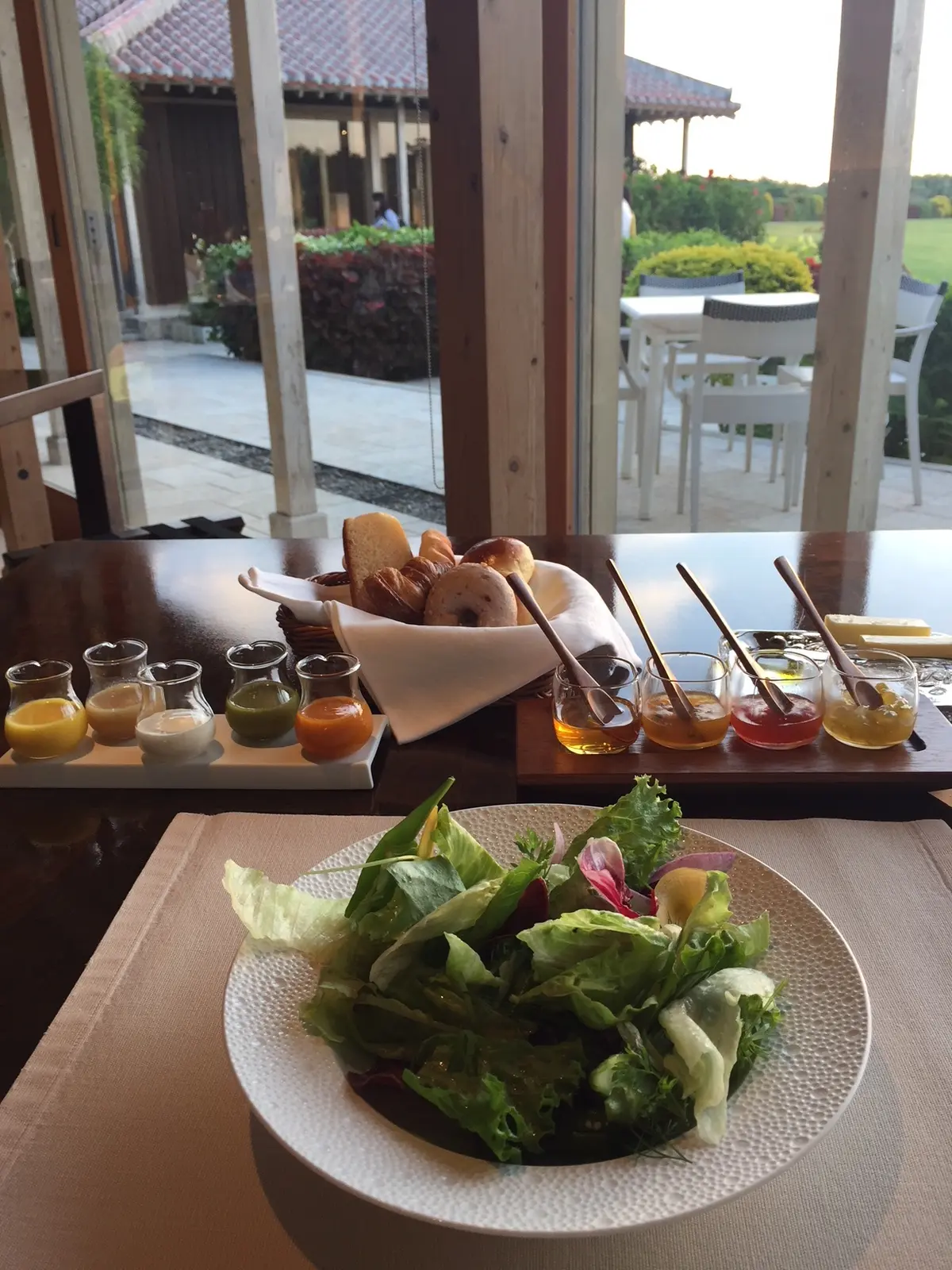快適なベッドでぐっすり眠ったあと、夏よりも遅い冬の朝日に迎えられながらいただく朝食は、その澄み切った空気もごちそう。島の野菜をたっぷりといただきましょう。