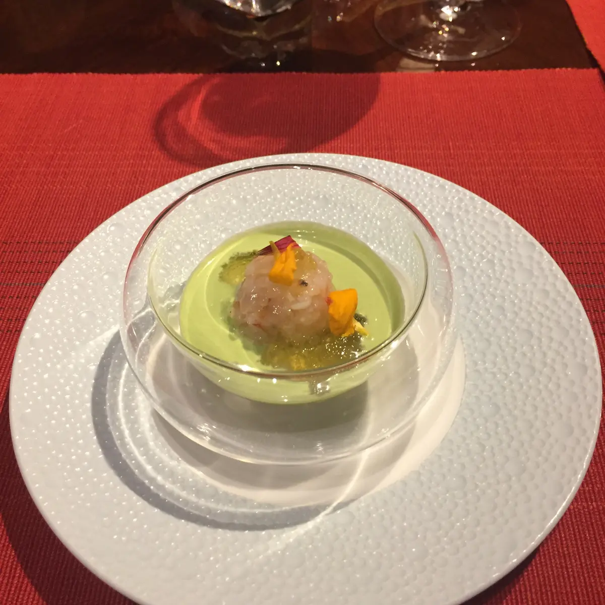 外のテラスで食前酒をいただく「島風(しまかじ)アペロ」から始まるディナー。冬こそが一番おいしいといわれる芋や、島では冬に旬を迎えるハーブ、野菜。そして島の特産品でもある車海老などを、全10皿。沖縄というとどうしても夏のイメージが強いけれど、冬には冬の「旅に出る理由」があるな……とうならされるコースです。