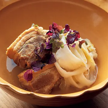 お店でも人気の香味ポン酢と山椒じょうゆ。牛肉ときのこという強い料理にも負けず、熟成シャンパーニュとの懸け橋にも。味の変化を楽しみながら、最後まで心踊りながら食べすすめられる極上の組み合わせ。