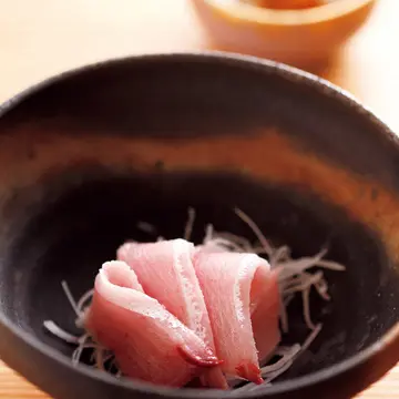 つまみの「ぶりのすなずり」。すなずりとは、はらすにあたる部分。もみじおろしの醤油で