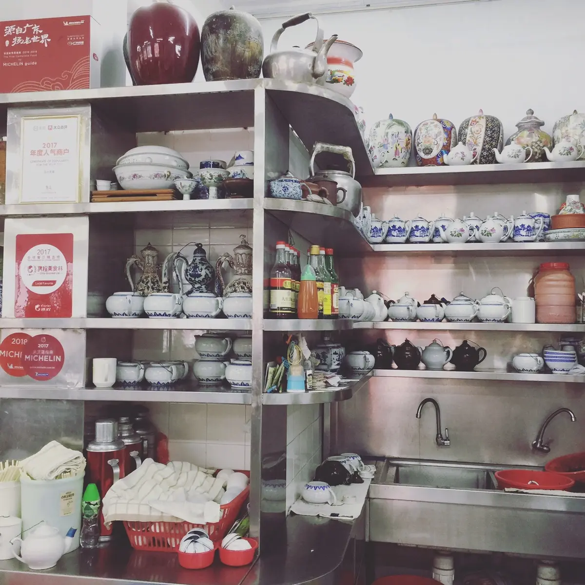 マカオにも10年ぶりくらい?に高速船に乗って行きました。わたしの記憶の中に、夢のように素敵な飲茶の店があり、検索するうちに出会ったのです! 記憶では、常連客が鳥籠を持って吸い込まれるように建物の2階にある店に入って行き、店の窓に鳥籠が下がり、窓からは市場の赤い窓が見えていた……。港からタクシーですぐの距離にあり、階段を上ると、その景色がそのまま残っていました(鳥インフルエンザ以降、鳥籠の持ち込みは無くなったようですが)。