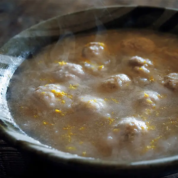 とろりとしたすりおろしれんこんに、柚子の香りがたって、体が芯まで温まる。ふわっとした鶏団子も優しい味わい。