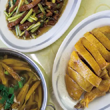 彩り鮮やかな朝食の台湾がゆセット。和食と洋食の3種類からお好みで選ぶことが可能