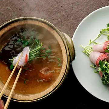 しゃぶしゃぶの出汁といえば昆布やカツオですが、林高太郎さんのおすすめは“ごぼう出汁”。ごぼうの風味がきわだつ妙味。