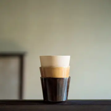 ウレタン塗装仕上げと、生漆をすり込んだタイプがそろう、ちょこカップ。(上から)ナチュラル¥2,260、琥珀塗¥2,640、黒琥珀塗¥2,870(税込)