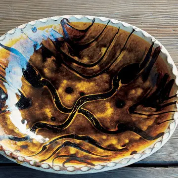 スリップウエアの技法がモダンな、布志名『舩木窯(ふなきがま)』・舩木研児作の大皿
