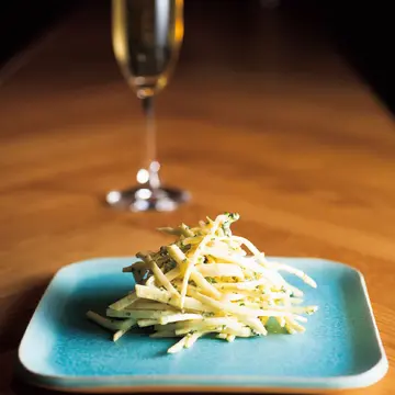 代々木八幡『PATH』で立ち上げから3年シェフを務めた光安北斗さんが、幡ヶ谷の商店街の入口にビストロを開いた。修業先は『Passage53』などを筆頭にフランスで7年、その後ニューヨークへ渡り、ブルックリンの『Battersby』でも半年を過ごした。技術の軸足はフランスに、自由な表現はニューヨークに。経験が、店のカラーになっている。例えばタコのコンフィは、発酵パプリカのソースでスペイン料理のガリシア風仕立てに。定番のフランス総菜、ウフマヨも、カラスミのうま味がアクセントのエッジの立った味だ。クラフトビールからナチュラルワインまで、料理に寄り添う酒のそろえもぬかりなし。素通しの窓で通りとつながる空間は心地よく、カウンターでは立ち飲みもウェルカム。幡ヶ谷から東京の今を発信していく店になりそうだ。