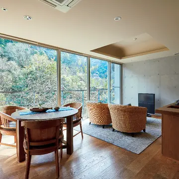 鹿児島空港から車で約15 分。なによりお湯がすばらしい! 霧島火山帯の恵みを存分に体感できる。加水せず、貯槽せず、地中からあふれ出す源泉を引いているため、どこの湯より体の芯まで温まると評判だ。地元の石を使った石蔵を改造したレストランでの食事もここの楽しみ。朝食は天降川のせせらぎを聞きながら。羽釜で炊いた伊佐米のふっくら、つややかなこと! 源泉かけ流しの露天風呂つきの部屋もあり、夢見心地の休日を約束してくれる。