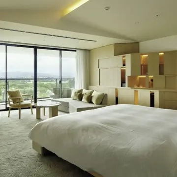 34階から38階に位置する客室は、機能性とシンプルさを兼ね備えていて快適。見晴らしがよく自然光が射し込む客室からも、皇居や富士山、都内の景観を望める。流れる生地をモチーフにしたヘッドボード、障子にインスパイアされたドアなど、至るところに日本文化に対するオマージュが取り入れられているのが特徴だ。