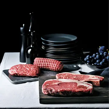 近江牛を中心に、小売りの商品もバラエティ豊かにそろうのが魅力。ローストビーフ用のかたまり肉からステーキ用のサーロインやロース、厚切りの焼き肉用からしゃぶしゃぶ用まで。どんな調理法でも、肉質はきめ細かく脂(あぶら)の甘味が豊かな近江牛ならではの風味を存分に味わえる。自宅用はもちろんのこと、贈り物としても喜ばれるラインナップ。