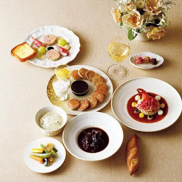 ’17年に大塚哲也シェフが就任以来、端正な料理が話題。塩だけで味つけした信州ハーブ鶏を低温でじっくり焼き上げ、表面をエスカルゴバターでコーティング。ふっくらとした食感で、肉のうま味がきわだっている。詰め物はハーブやスパイスが香るシャルキュトリで、多彩な味が楽しめる。1週間前までに要予約。1羽¥12,000(税・送料込)