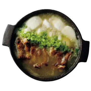 真っ白な見た目が特徴的な「すりおろし鍋」。体に優しい“白食材”が疲れた胃腸も癒してくれます。パセリのタレにつけながらいただきましょう。