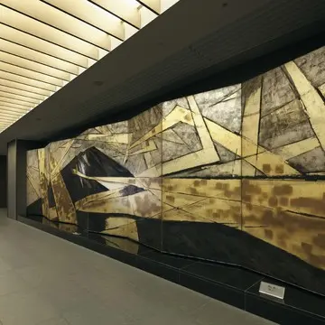 篠田桃紅による『無題』。抽象性の高い作品は、現代の新しい建物にも見事にマッチする。