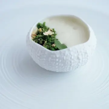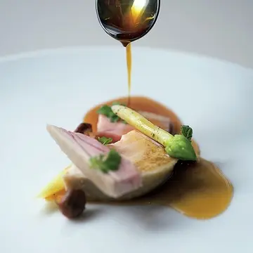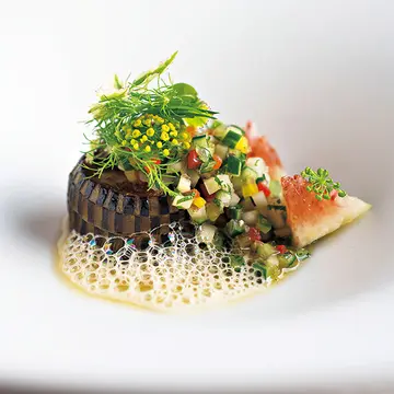 小鉢であっても、コースの前菜と同様の手間をかけており、クオリティと味は本店と同じ。メインには、シェフの得意料理「ブイヤベース」、新たに考案したスペシャルなハンバーグなど、本格派の味が登場する。「料理人歴25年間で培ったフレンチの技を最大限に生かしています」とシェフ。新しい挑戦は朝食にも。ホテルライクな「オムレツ御膳」、フレンチスタイルのハンバーガーなどのメニューは遊び心満載。ひとりでも本物の味をサクッと楽しめる、時代に寄り添ったカジュアル店の登場だ。
