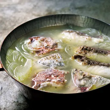 豆乳のコクとレモンのさわやかな酸味が相性抜群! もろもろっとした食感が楽しい。タラのほか、鯛やアサリでも。