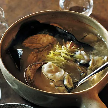 2. 1に白菜の葉のせん切りをのせて、2分ほど煮る。粗塩で味をととのえ、柚子こしょうでいただく。