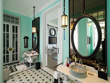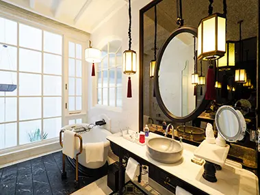 客室内は天井が高く、カテゴリーごとにテーマ色が決められている。バスタブやミラーもそれぞれが凝った作りで、眠るのが惜しくなるような楽しさだ。 ブライベートビーチには、カヤック、シュノーケリングなど豊富なアクティビティーがそろい、中には無料のものもある。フィットネスセンターやスパも充実している。メインダイニングのメニューは、洋風、和風、ベトナム風とバリエーション豊か。別に本格的な中華レストラン「ピンクパール」も営業している。また、無料のレンタサイクルもあるので、近くの街のレストランまで足を伸ばすこともできる。