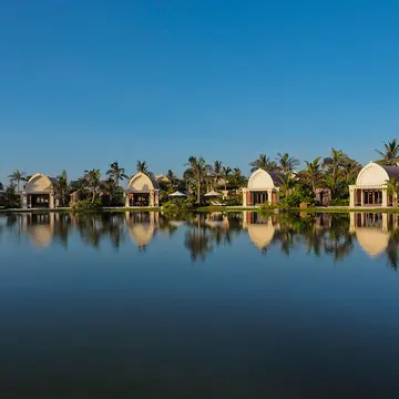 レセプション棟はベトナム中部の民族チャンパ風のデザインで、外側には世界遺産に指定されたチャンパゆかりのミーソン遺跡のレプリカが飾られている。フロントデスクのベルをチリンと鳴らすと、奥から控えめな笑顔が現れ、誠実にリクエストに応えてくれる。慌てない、騒がない、ゲストとの距離感を心得たスタッフ。成熟したリゾートの対応は、自分の家に居るように心地よい。