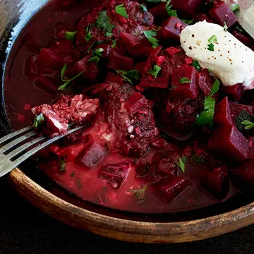 3.鍋にごま油を熱し、2を2分ほどよく炒める。豚肉をのせ、Aを加えて煮込み、アクを取り除く。豚肉に火が通ったら器に取り分け、ザク切りにした香菜と黒酢を適宜加えていただく。
