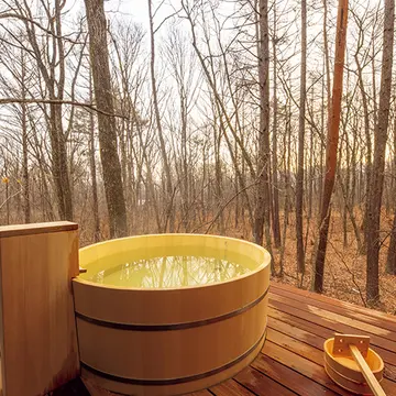 京都市内の北部、鷹峯(たかがみね)の森の中にある、一棟貸し切りの完全プライベートサウナ施設。5人入れる薪ストーブ完備のサウナで体を温めたら、鴨川源流の天然水を使った屋外の水風呂へ。そして小川のせせらぎや木々のざわめきに包まれての外気浴。さらに川の水を薪で温めた露天風呂までそろうという、これ以上ないシチュエーション。